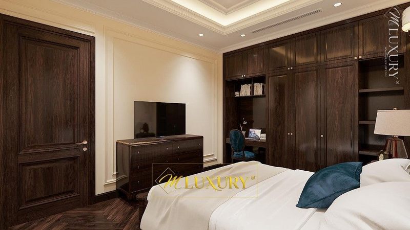 Mẫu thiết kế phòng ngủ chung cư cao cấp phong cách tân cổ điển