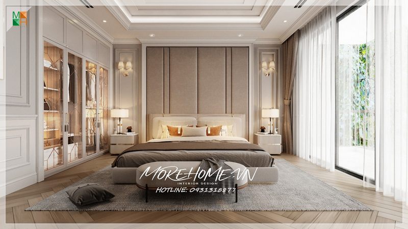 Mẫu thiết kế nội thất phòng ngủ biệt thự hiện đại hoàn thiện bởi KTS Morehome được gia chủ vô cùng hài lòng và đánh giá cao