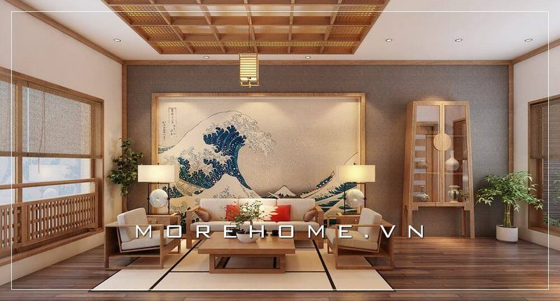 Mẫu sofa gỗ tự nhiên đệm tone kem hiện đại tạo điểm nhấn nổi bật cho không gian phòng khách chung cư