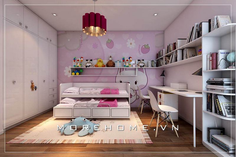 Mẫu giường ngủ trẻ em màu trắng là lựa chọn hàng đầu để tạo sự liền mạch, đồng bộ với nội thất khác trong căn phòng của các căn hộ chung cư, nhà phố.