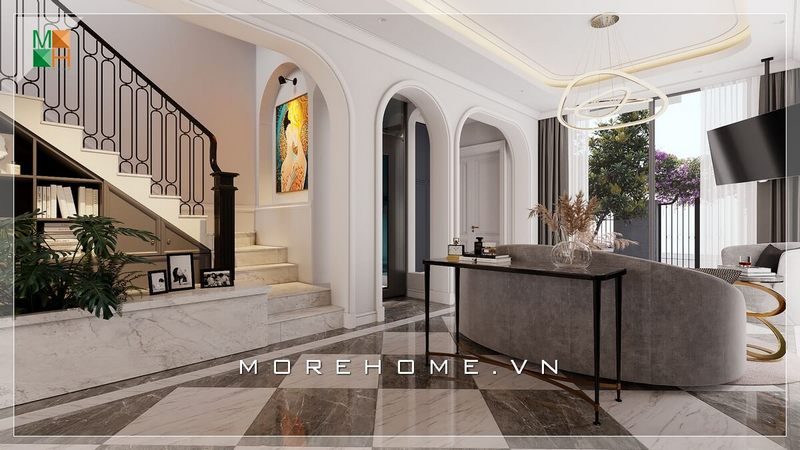 Mẫu thiết kế cầu thang ốp đá nhân tạo cao cấp được dành riêng cho các công trình như chung cư, biệt thự, nhà phố mang đến sự sang trọng và đẳng cấp phong cách tân cổ điển.
