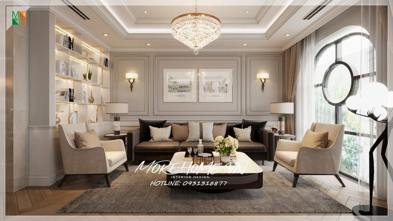 Sàn gỗ hình xương cá là lựa chọn tuyệt vời để trang trí phòng khách của chủ hộ. Với màu sắc không quá sáng và không quá tối, sàn gỗ hình xương cá giúp căn phòng khách trở nên ấn tượng hơn trong mắt người khác. Ngoài ra, sàn gỗ xương cá cũng rất dễ vệ sinh bởi bề mặt sàn gỗ luôn bóng, mịn.
