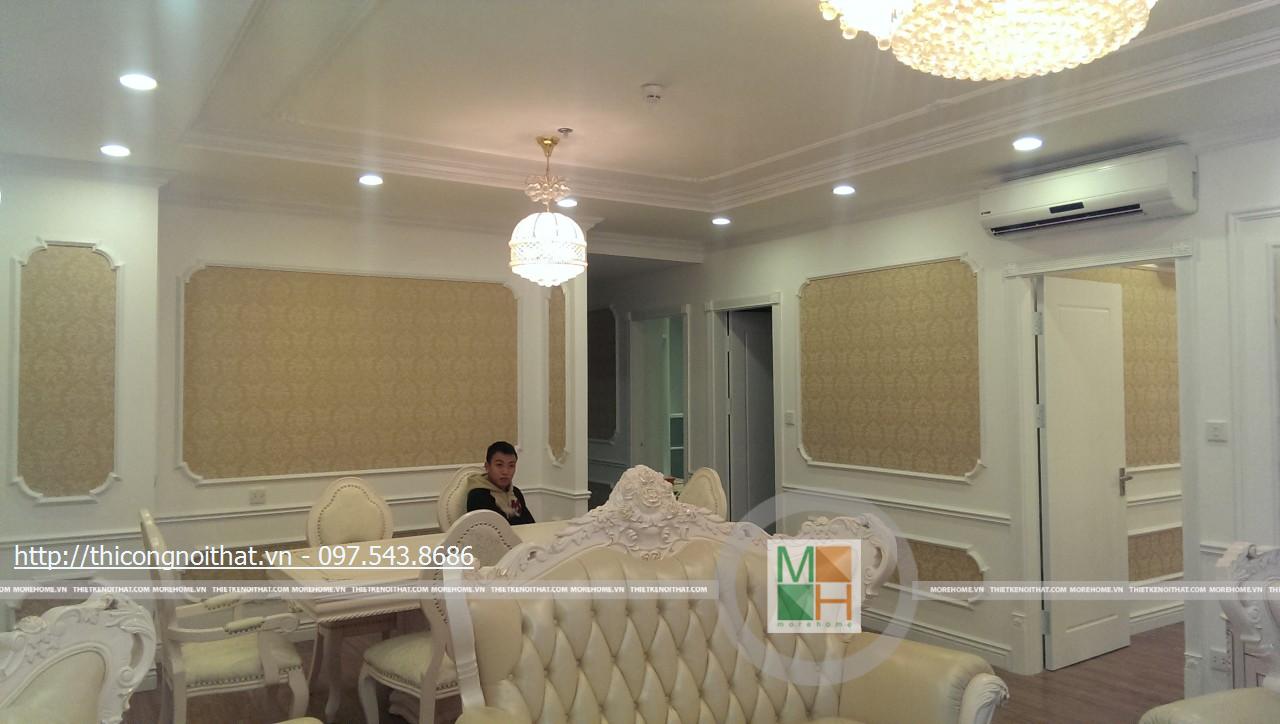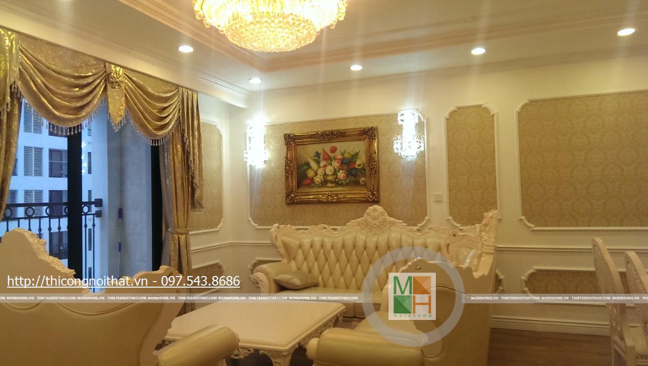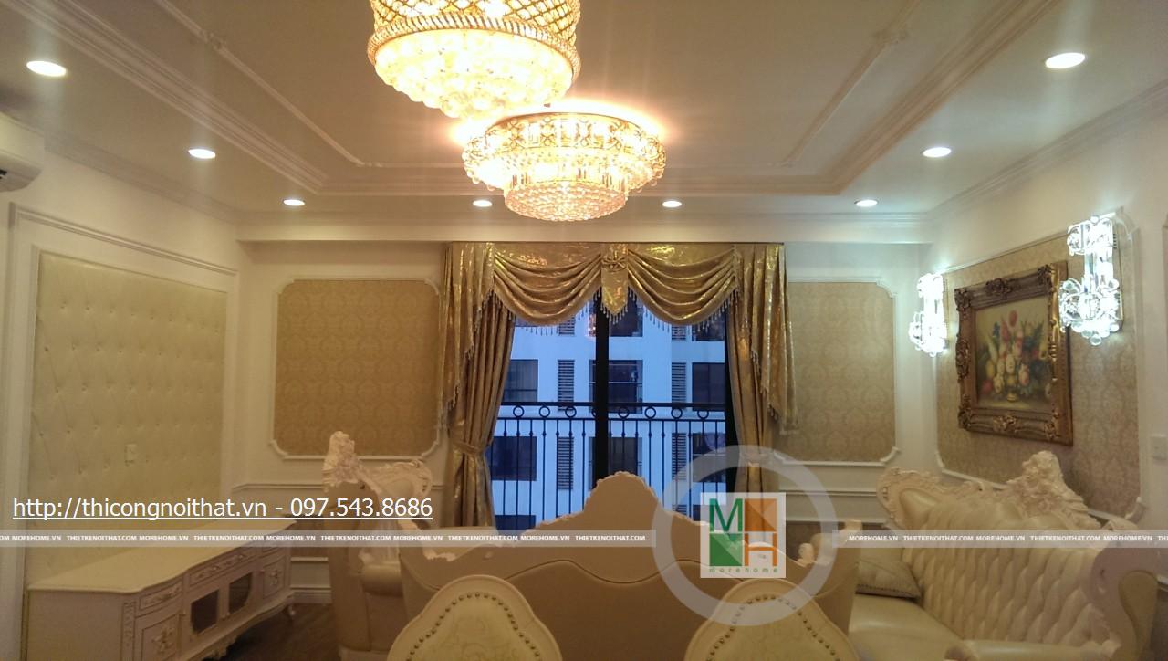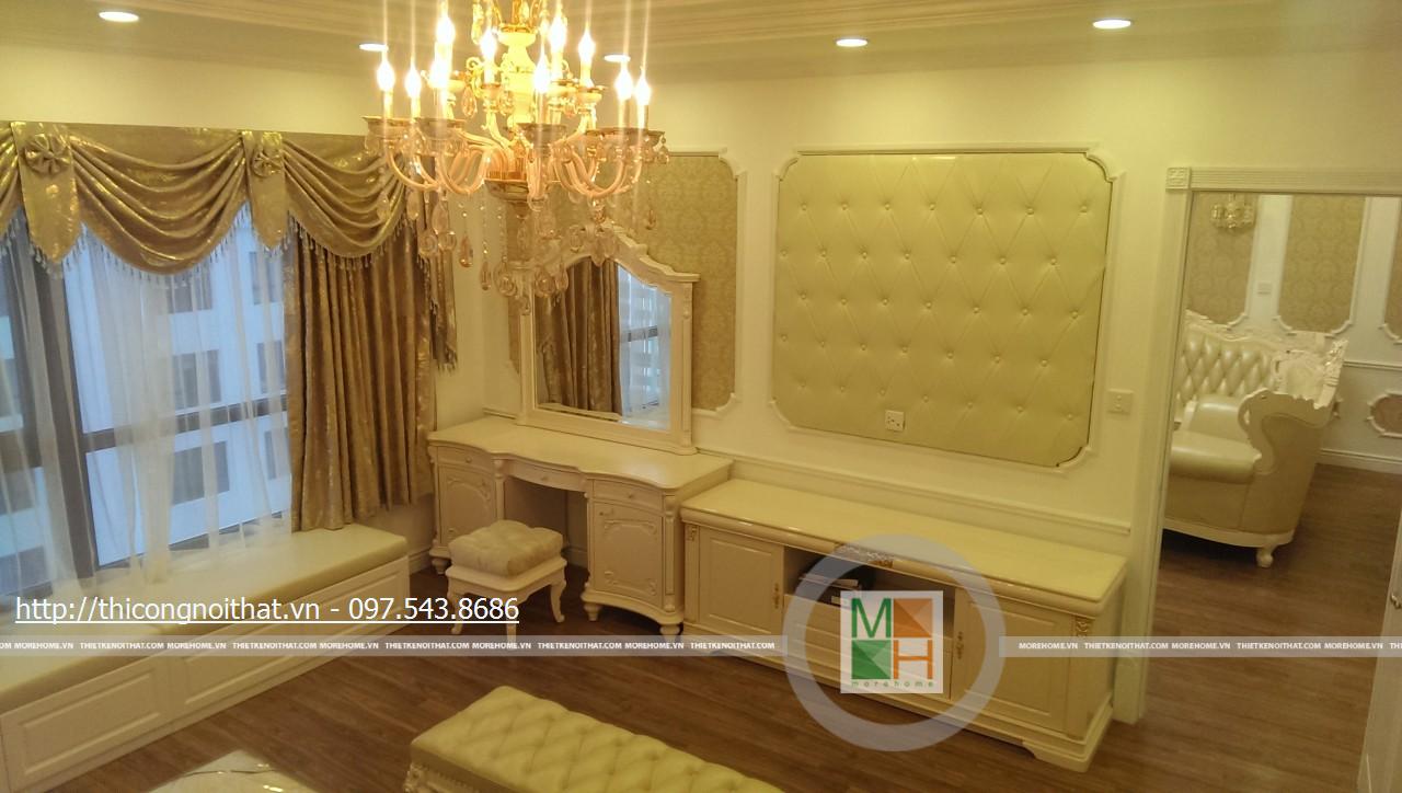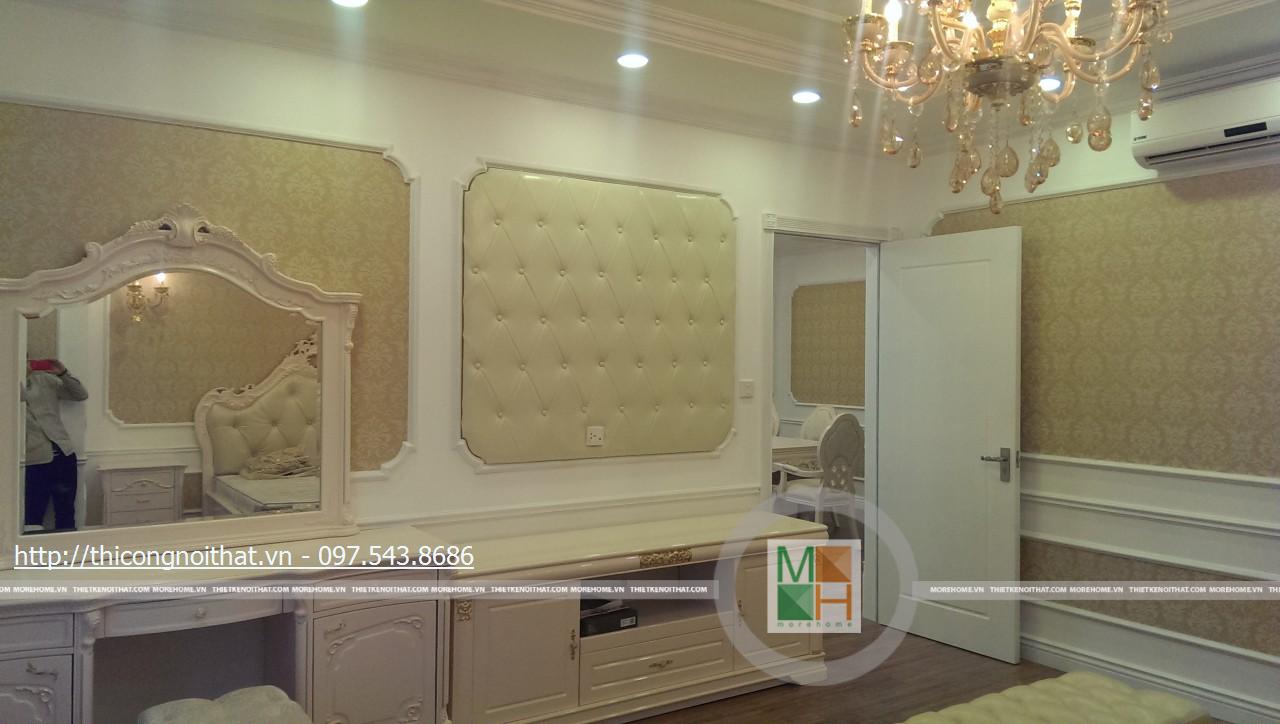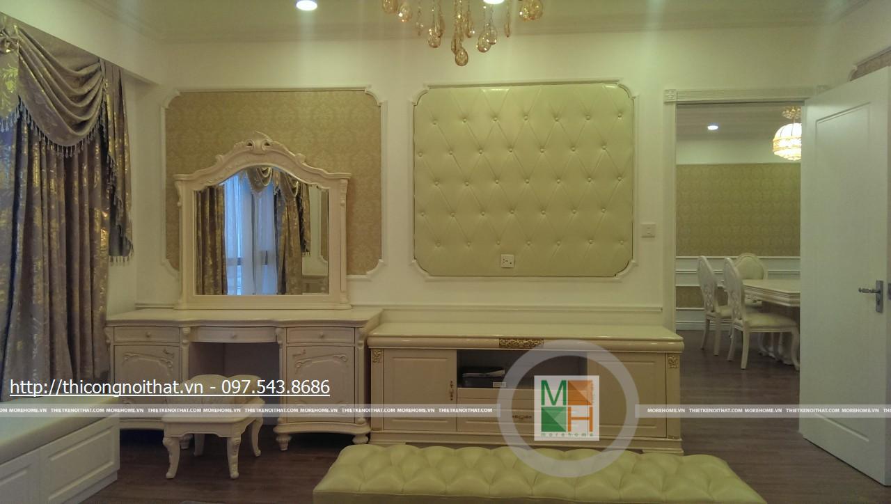 Thiết kế và thi công nội thất theo phong cách tân cổ điển trong căn hộ nhà chị Hà Anh tại chung cư Times City là 1 trong những hạng mục dự án của Morehome. Công trình được thực hiện bởi đội ngũ kiến trúc sư, thợ thi công lành nghề của Morehome và dựa trên 1 phần ý tưởng của gia chủ cũng như gợi ý của thiết kế của đơn vị thực hiện.