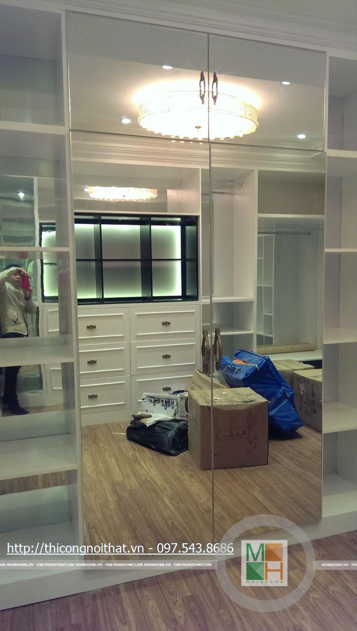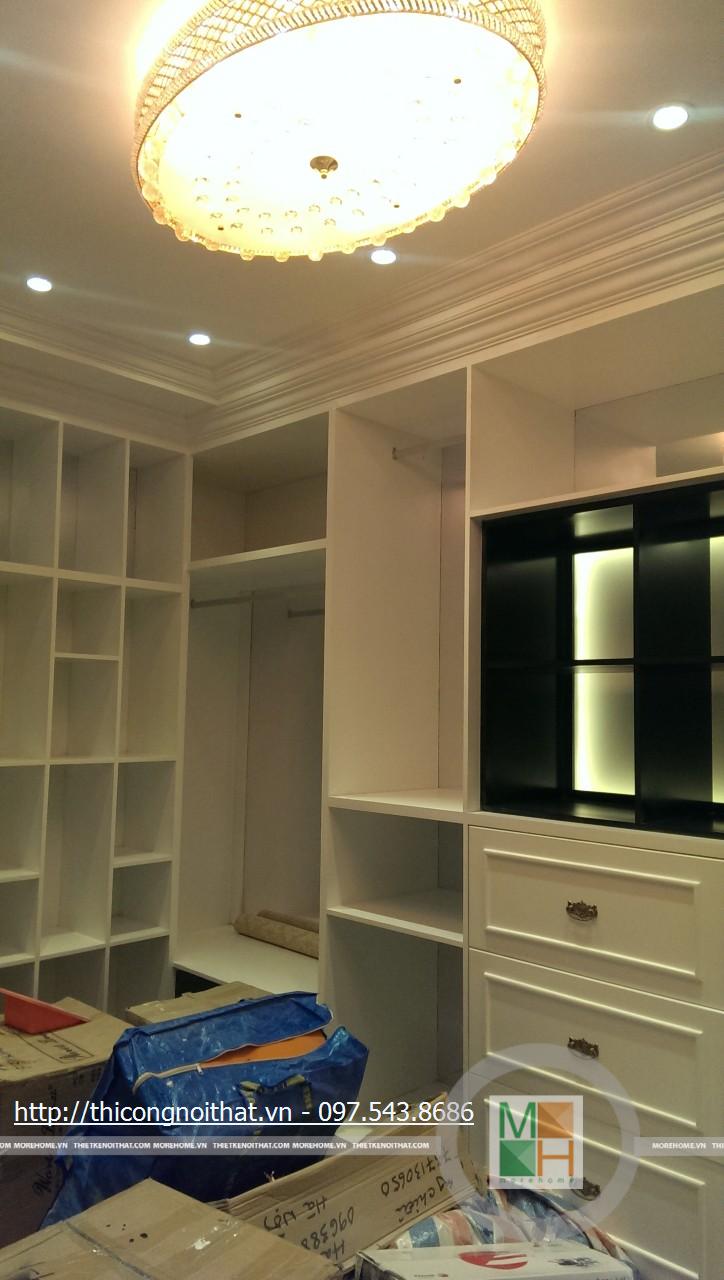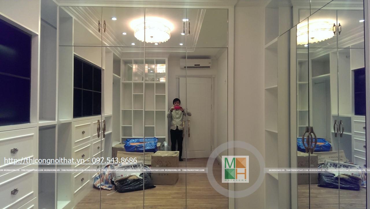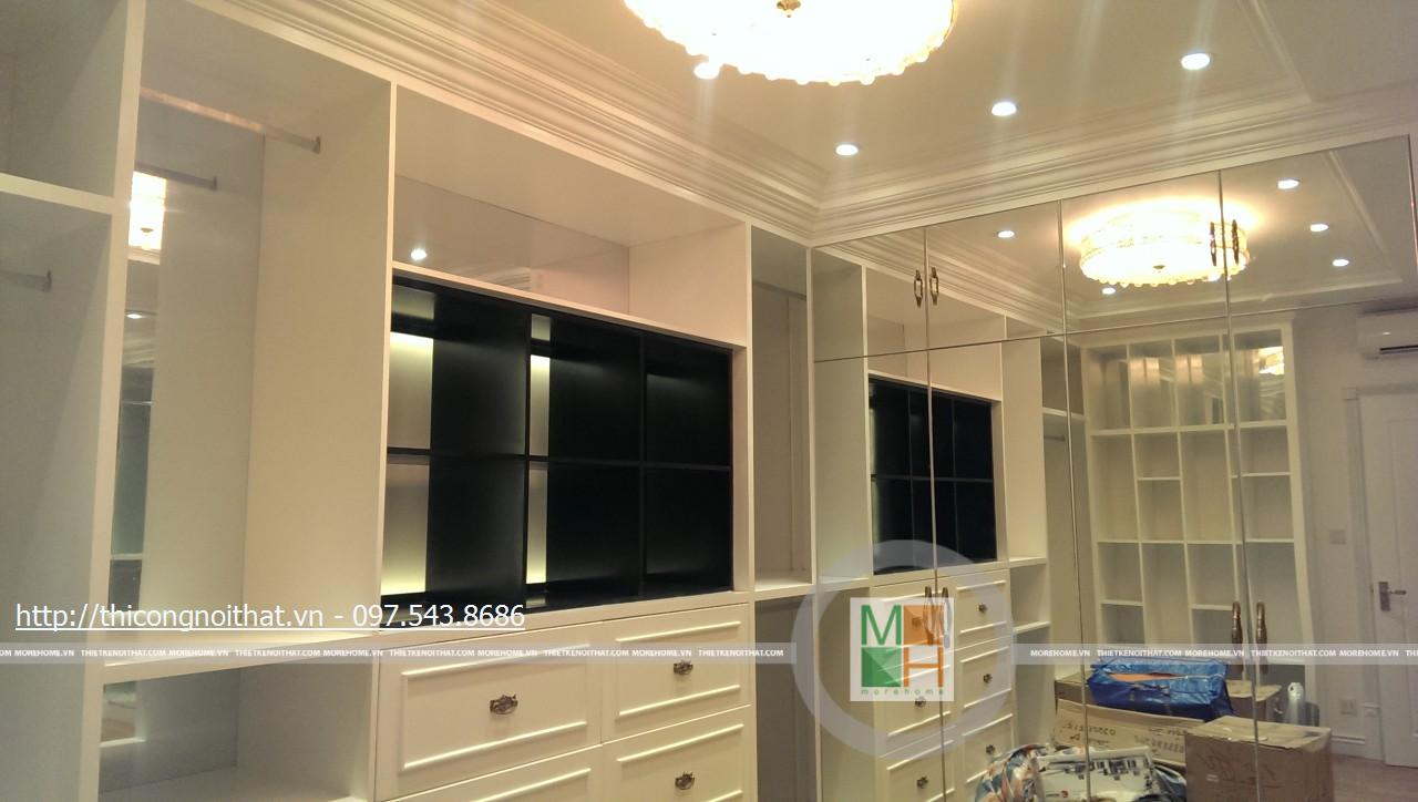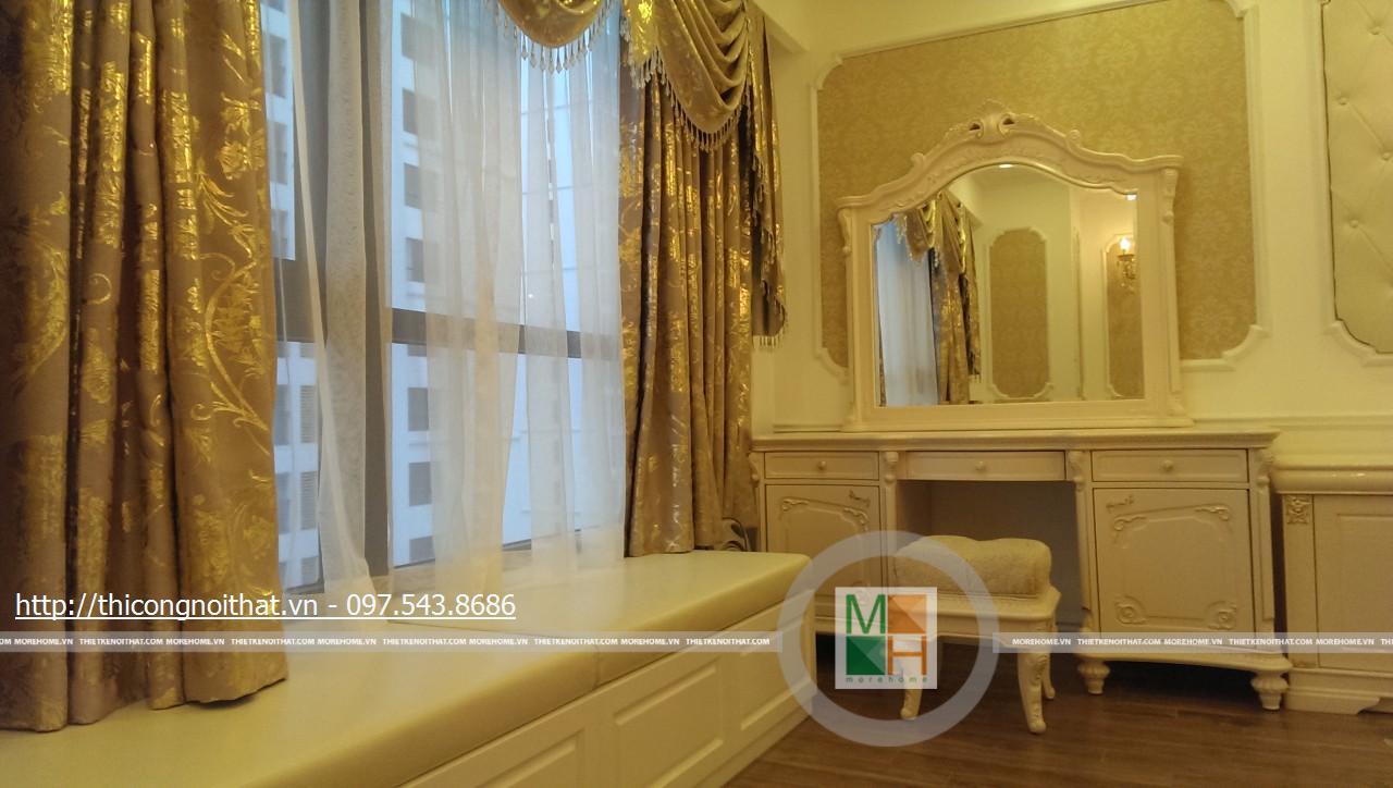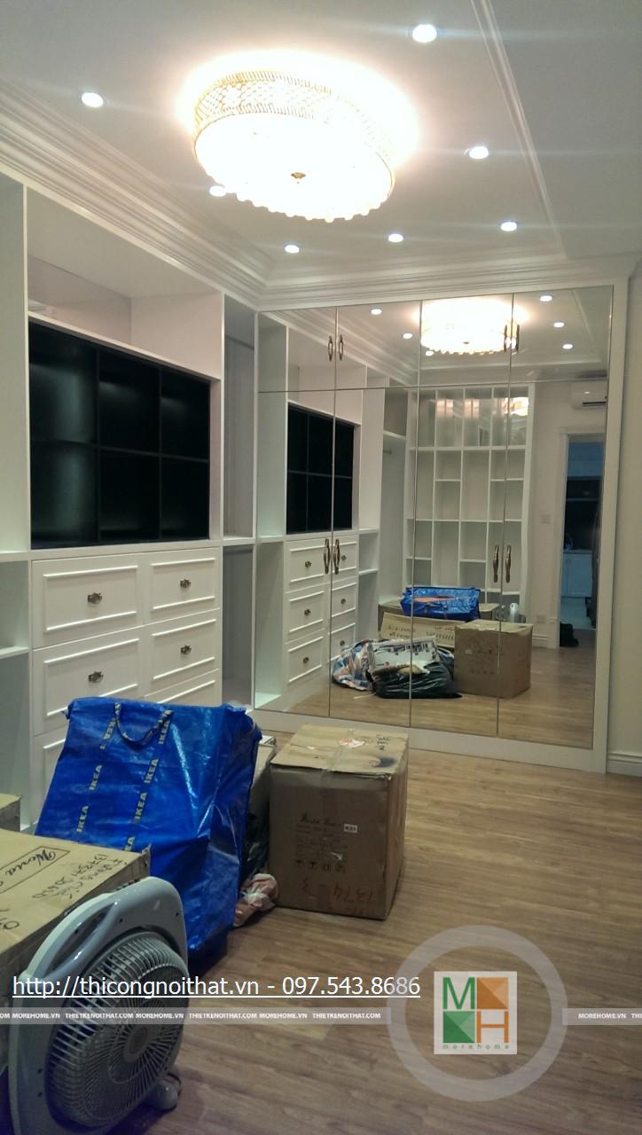 Thiết kế và thi công nội thất theo phong cách tân cổ điển trong căn hộ nhà chị Hà Anh tại chung cư Times City là 1 trong những hạng mục dự án của Morehome. Công trình được thực hiện bởi đội ngũ kiến trúc sư, thợ thi công lành nghề của Morehome và dựa trên 1 phần ý tưởng của gia chủ cũng như gợi ý của thiết kế của đơn vị thực hiện.