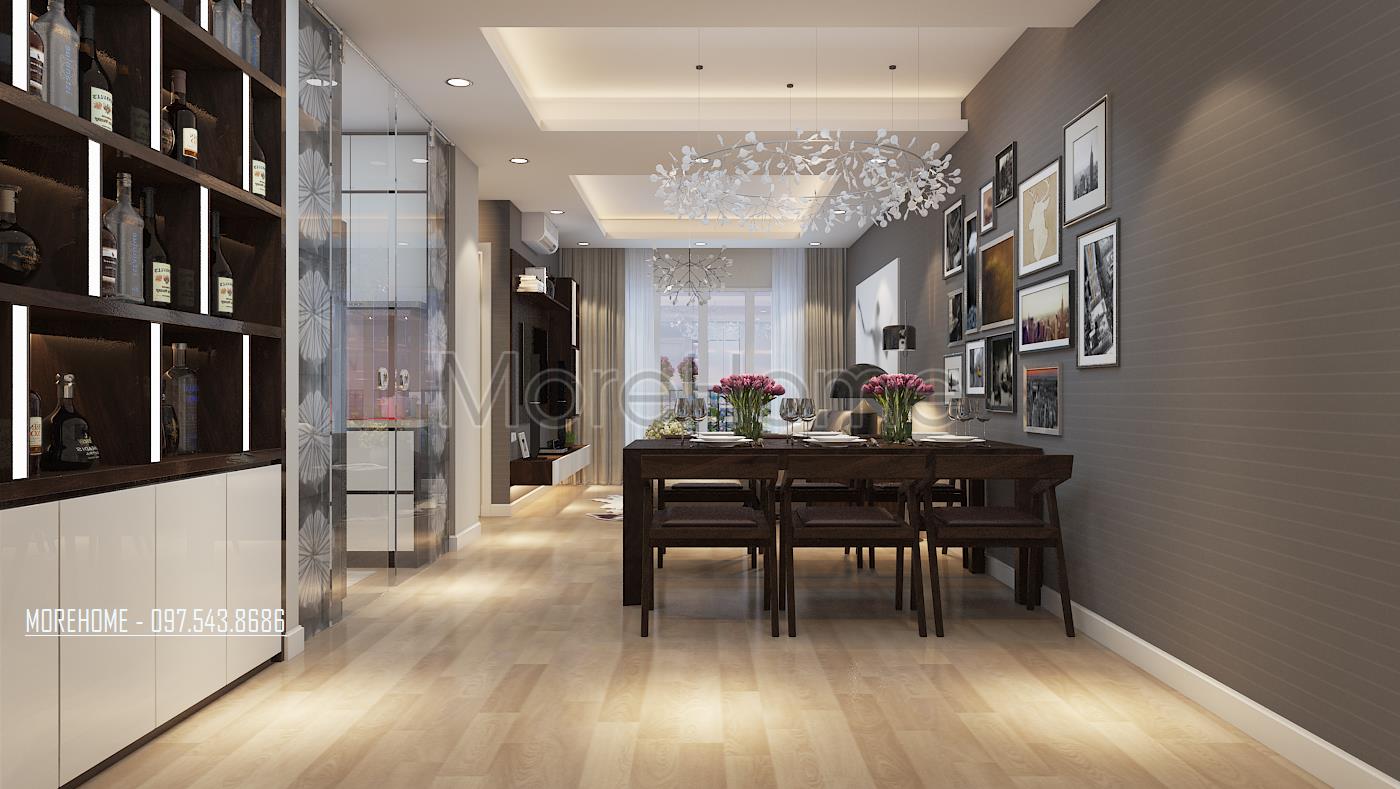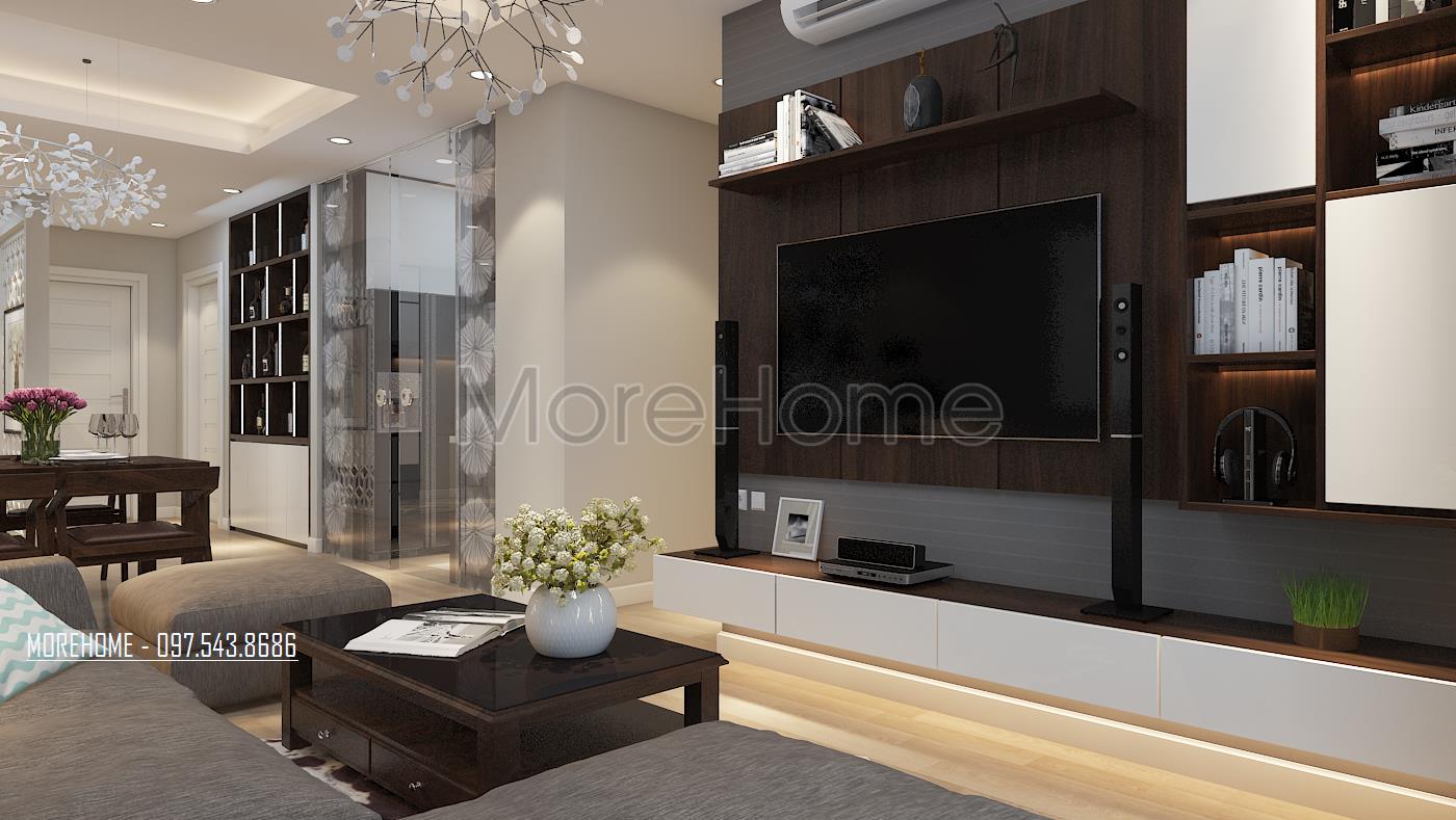 Căn hộ chung cư nhà Anh Trường dưới đây là một ví dụ. Diện tích căn hộ không lớn lắm nên gia chủ đã quyết định lựa chọn phong cách hiện đại. Sự phối hợp hài hòa giữa các mảng màu đơn sắc đã tạo nên phong cách tiêng cho mẫu thiết kế này. Cùng Morehome khám phá sự bí ẩn được che dấu trong mẫu thiết kế nội thất hiện đại này nhé.