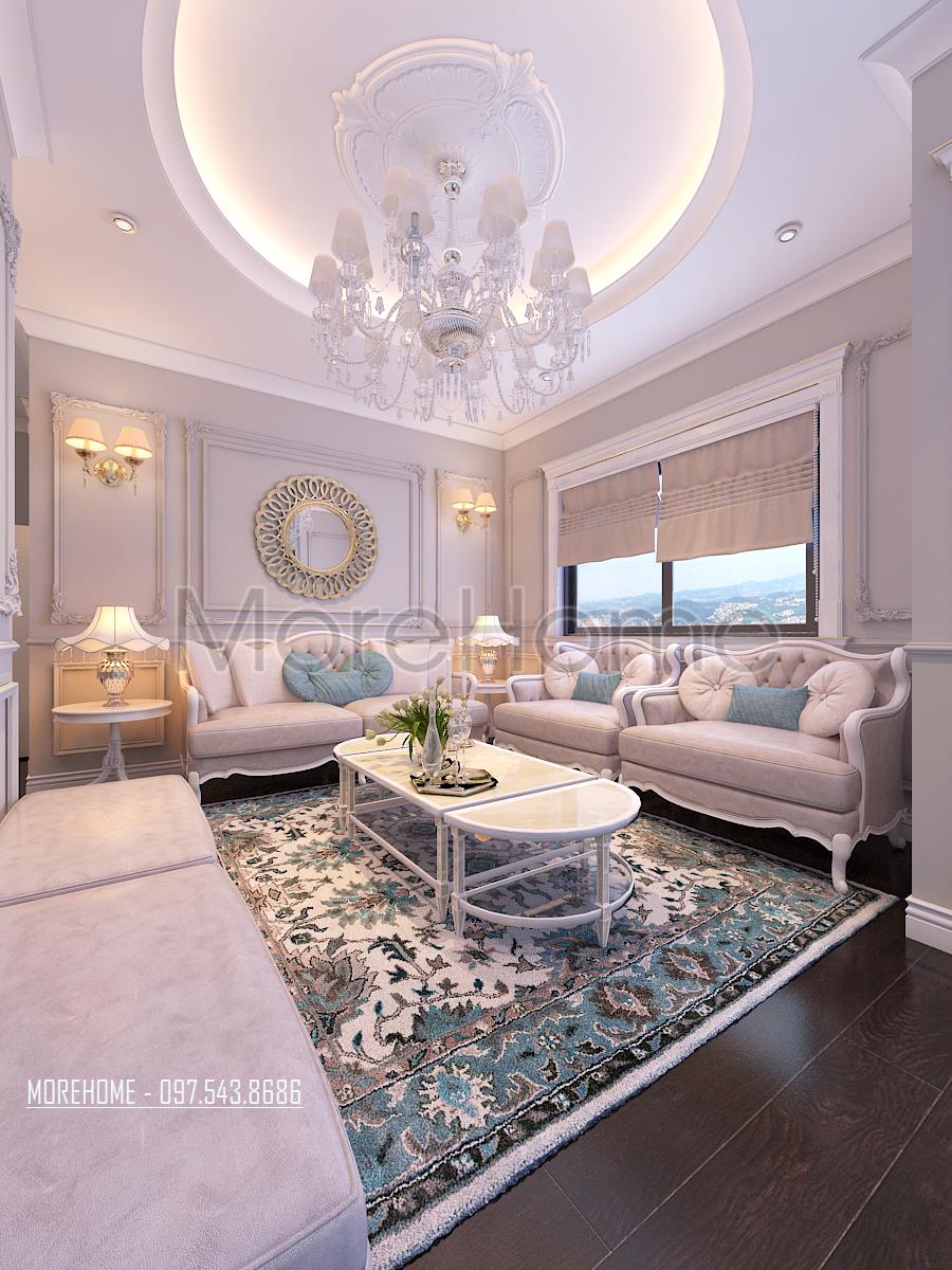 nguồn: Thiết kế nội thất phòng khách chung cư tân cổ điển Ruby Tower