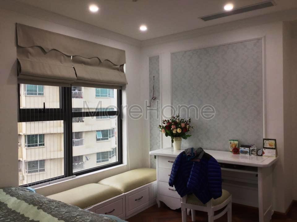 Thiết kế nội thất chung cư theo phong cách tân cổ điển thường thiên về sử dụng các đường nét trang trí tỉ mỉ từ đó mang lại cảm giác nhẹ nhàng và thanh thoát cho căn nhà. Các thiết kế tường thô built-in cứng nhắc thường được cải tạo mang đến không gian sống đồng nhất và liền mạch, đồng thời, với các thiết kế mở như vậy, diện tích sử dụng đa năng sẽ được mở rộng đáng kể. Tuy không có cách vách thô cứng nhắc nhưng thiết kế căn chung cư Hà Đô Park View lại khá chi tiết, có khi tạo điểm yếu gây rối mắt và rườm rà. Để khắc phục điểm yếu như vậy, ánh sáng và màu sắc chính là hai yếu tố tiên quyết. Tone màu nền trắng được sử dụng không chỉ làm nổi bật các chi tiết trang trí đậm chất tân cổ điển mà còn tạo cảm giác cơi nới không gian. Ánh sáng tự nhiên được tận dụng tối đa đem lại sức sống cho không gian sinh hoạt chung.